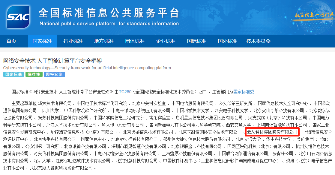 近日,國家標準GB/T 45958-2025《網(wǎng)絡(luò)安全技術(shù) 人工智能計算平臺安全框架》正式發(fā)布。該標準由全國網(wǎng)絡(luò)安全標準化技術(shù)委員會歸口管理,華為技術(shù)有限公司牽頭,云從科技作為核心起草單位之一,深度參與了標準制定工作。 這項將于2026年2月1日正式實施的國家標準,為人工智能計算平臺建立了系統(tǒng)化的安全框架,規(guī)定了安全功能、安全管理和角色安全職責,將有效應對硬件漏洞、訓練數(shù)據(jù)泄露、對抗樣本攻擊等新型安全威脅。